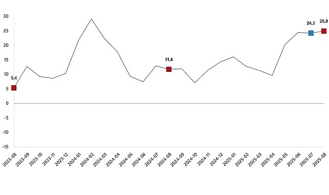 2025 yılının Ağustos ayında, inşaat sektörünün alt kolları (2021=100 referans yılı baz alınarak) değerlendirildiğinde, bina inşaatı sektörü endeksi geçen yılın aynı dönemine göre %26,6 artış gösterdi. Bina dışı yapıların inşaatı sektörü endeksi %17,4 yükselirken, özel inşaat faaliyetleri sektörü endeksi %25,1 oranında büyüdü.