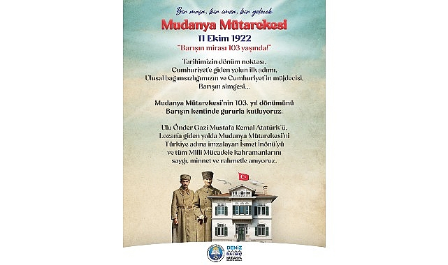 Mudanya Belediyesi, Türkiye’nin bağımsızlık yolundaki dönüm noktası olan Mudanya Mütarekesi’nin 103. yıl dönümünü “Bir masa, bir imza, bir gelecek” temasıyla kutlayacak. Başkan Deniz Dalgıç, “Mudanya, barıştan vazgeçmeyenlerin kentidir” mesajıyla tüm barış sevdalılarını Mütareke Meydanı’na davet etti.