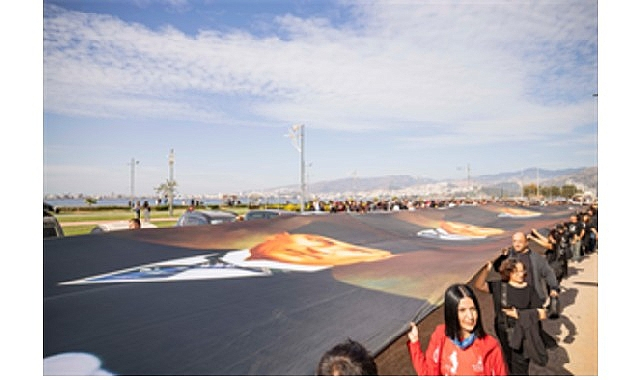 Ulu Önder Gazi Mustafa Kemal Atatürk’ün ebediyete intikalinin 87. yılında, İzmirliler 350 metrelik dev Atatürk posteri eşliğinde "Ata’ya Saygı Yürüyüşü"nde bir araya geldi. Alsancak Limanı yakınlarındaki Kordon Çocuk Parkı’ndan başlayan yürüyüş, Cumhuriyet Meydanı’na kadar sürdü. İzmir Büyükşehir Belediyesi Başkan Vekili Dr. Zafer Levent Yıldır’ın da katıldığı etkinlikte, meydanda "1881–193∞" yazısı koreografi ile oluşturuldu.